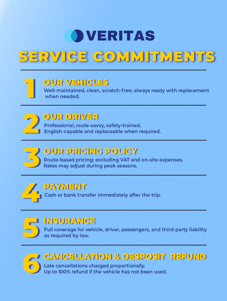- The driver’s meals and accommodation expenses are fully covered by the driver and are not included in the rental price.