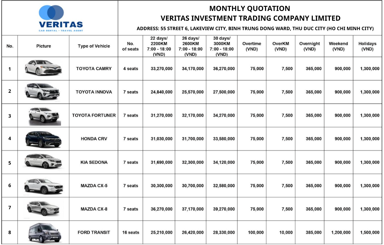 + Rental prices may vary during weekends, peak periods, public holidays, or Tet (Lunar New Year).